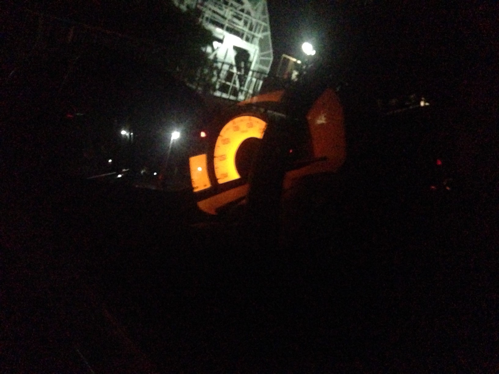 窓に映るメーター。向こうに見えるのはなんかの機械。