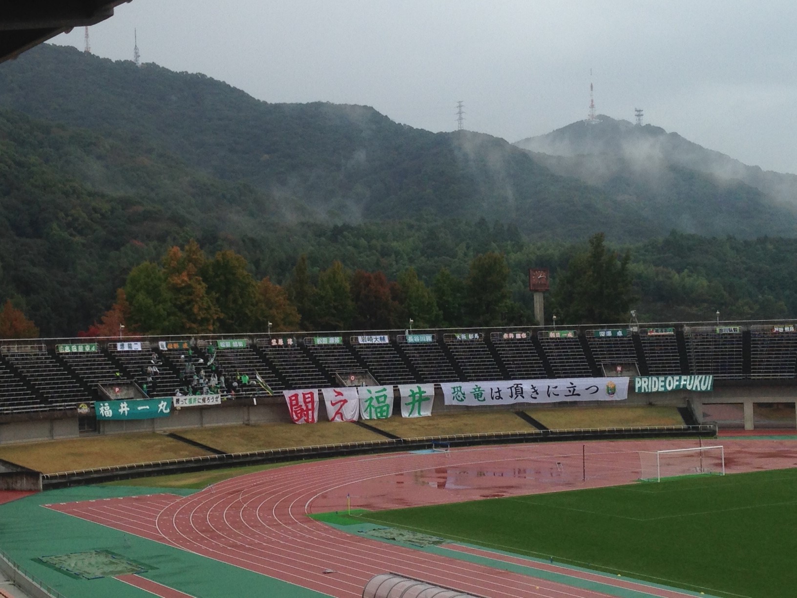 ↑ライバルを踏みつぶす恐竜の勢いで応援するサウルコス福井サポーターの皆さま。