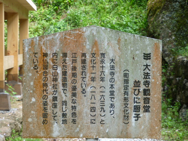 隘路を進むことしばらく、大法寺に着きました。とりあえずほっとひと息です。材木が新しい感じで、修復をされたようです。